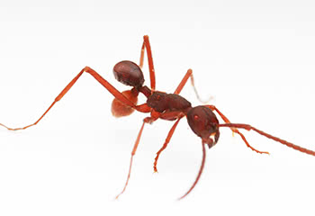 Free ride: On the backside of the ant, there appears to be two abdomens, but the darker one is in fact a beetle using the ant as a means of transportation. (Photo by Daniel Kronauer)