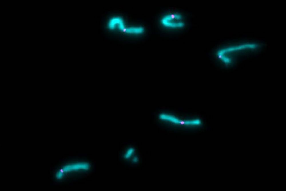 Chromosomes after extract dilution, a technique that disperses individualized chromosomes in the lab. Credit: Pavan S. Choppakatla